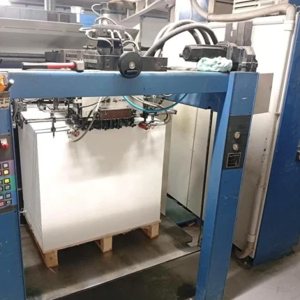 ماكينة KBA Planeta 104-5 L Varimat موديل 1992 هي ماكينة أوفست 5 ألوان مزودة ببرج ورنيش ونظام تجفيف هواء ساخن / IR، ومصممة لأعمال الطباعة التجارية الكبيرة وطباعة الكرتون. تعمل حتى مقاس 104 × 72 سم وتدعم أوزان ورق من 60 حتى 600 جرام، ومجهزة بأنظمة تحكم متقدمة في الحبر، نظام ترطيب Varidamp، برج تجفيف Eltosch، وتغذية Non-stop، ما يجعلها مناسبة للإنتاج الكثيف.