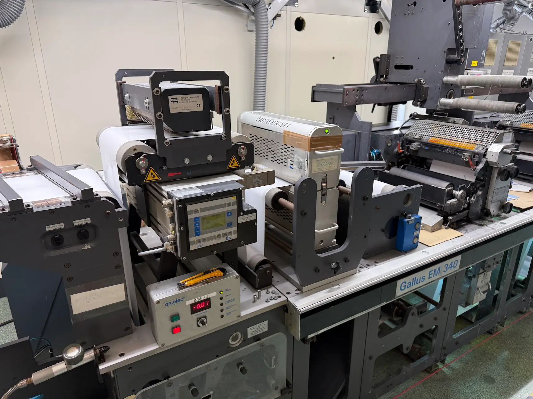 Gallus EM 340-6 is a high-performance 6-color UV flexo printing machine with an additional screen printing unit — designed for premium label and packaging production.