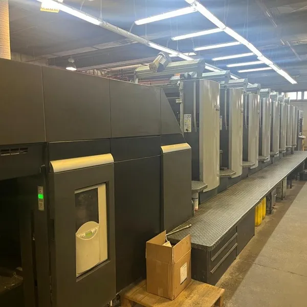 The press is equipped with CP2000 ink and register remote control, enabling fast makeready and precise color control. Autoplate Plus ensures fully automatic plate loading, reducing downtime and operator intervention. Ink and dampening stability are maintained through Alcolor Vario alcohol dampening, CombiStar CAN ink temperature control, and Technotrans Beta C refrigeration.