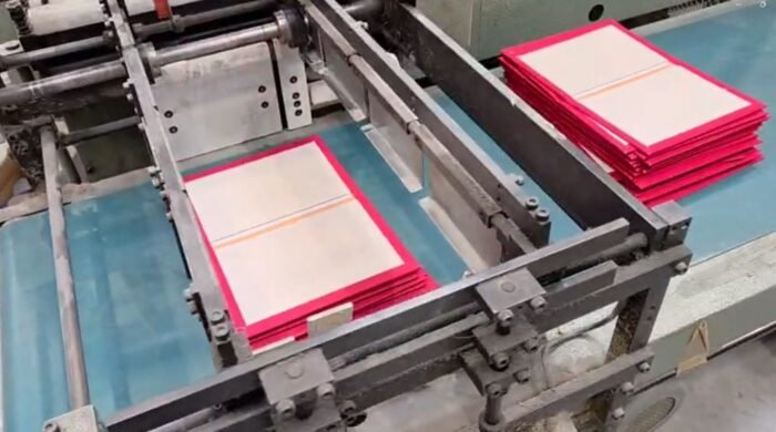 Processes: Board feeding, gluing, board positioning, cover feeding, cover gluing, turn-in folding, and final pressing