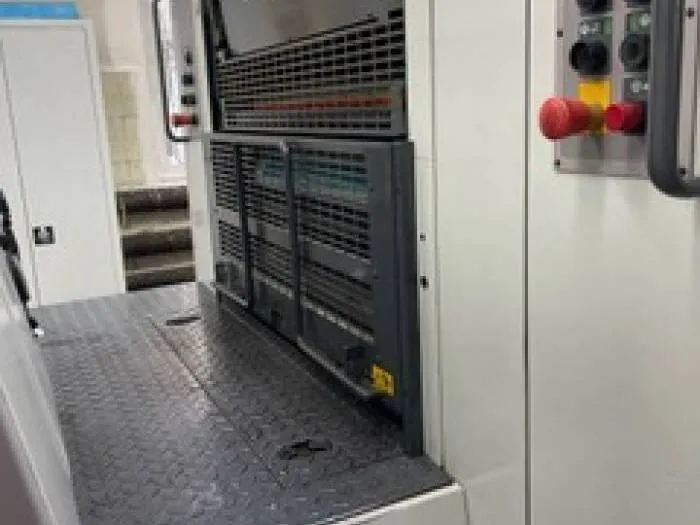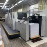 Equipped with a perfector configuration (2/3 – 5/0), the press allows flexible single or double-sided printing. The Rolandmatic alcohol dampening system ensures stable ink-water balance, while the Graphometric optical density control enhances color accuracy during production.