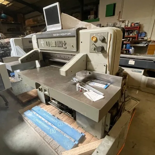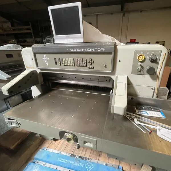 The Polar 92 EM-MON (1991) is a professional industrial paper cutting machine, designed for precise and efficient cutting in printing and finishing environments.