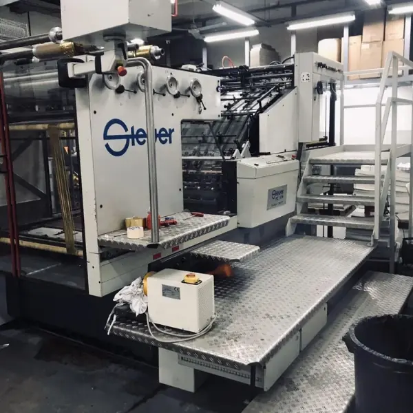The Steuer PZ 104 N (Year 2000) is a high-capacity hot foil stamping machine designed for precise and consistent foil application on large-format sheets.