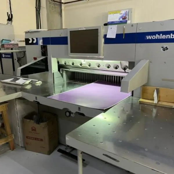 The Wohlenberg 115 (2008) is a robust and precise paper cutting system engineered for high-volume finishing environments. Known for its accuracy and reliability, this guillotine integrates essential peripheral equipment to optimize productivity and safety.