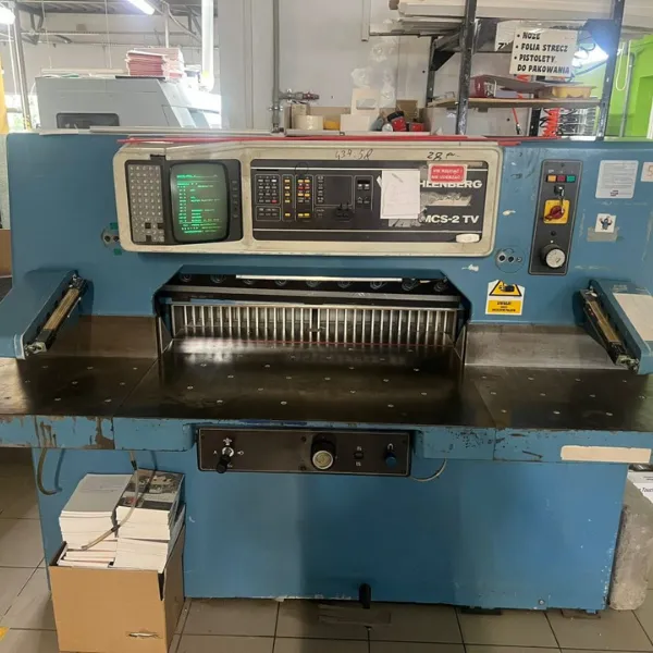 The Wohlenberg WP 92 MCS-2 TV is a heavy-duty single-knife guillotine paper cutter engineered for accurate trimming of printed materials. Manufactured by Wohlenberg, this model is equipped with the MCS-2 TV electronic control system, allowing precise back-gauge positioning and digital monitoring of cutting operations.