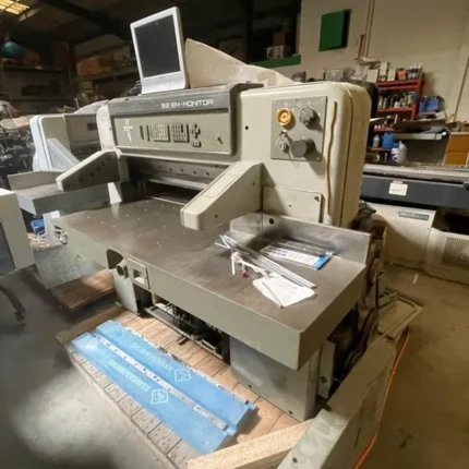 The Polar 92 EM-MON (1991) is a reliable industrial guillotine paper cutter with programmable memory system. Designed for precision and durability, it is ideal for commercial printing and finishing operations.