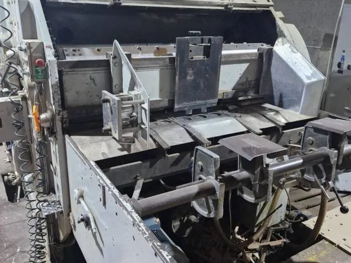 ماكينة بوبست SPO 1575 EG هي ماكينة تكسير فلات بيد أوتوماتيك للمقاسات الكبيرة، إنتاج سنة 1980 وتم تجديدها بالكامل عام 2015. تعمل بمقاس أقصى 1575 × 1055 مم وتتعامل مع كرتون مضلع بسُمك يصل إلى 9 مم. مزودة بتغذية وتسليم Non-Stop، ونظام شفط Vacuum Plate، ومحطة تنظيف مزدوجة، وقوة ضغط 300 طن، مما يجعلها مثالية لإنتاج الكرتون الصناعي الثقيل.