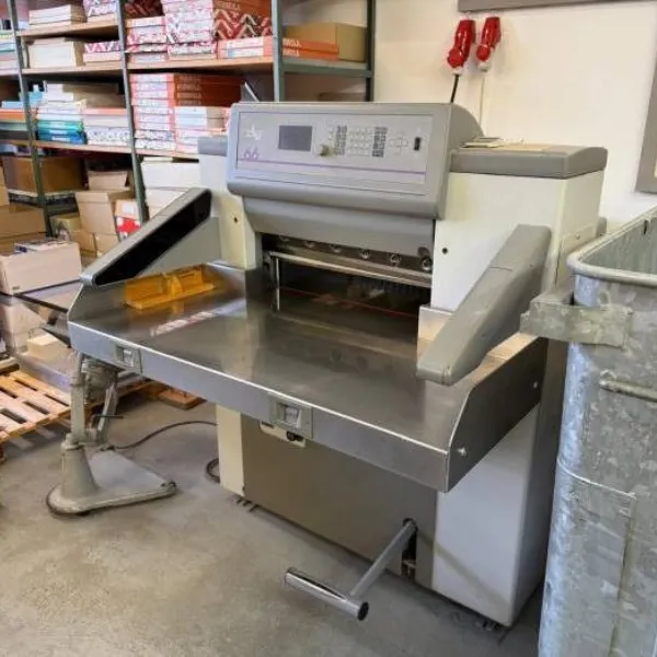 ماكينة بولار 66 E موديل 1998 هي ماكينة قص ورق هيدروليك مصممة لتلبية احتياجات أقسام التشطيب في المطابع الصغيرة والمتوسطة. تم تصنيعها بواسطة شركة Polar (Adolf Mohr) الألمانية، المعروفة عالمياً بجودة ماكينات القص.