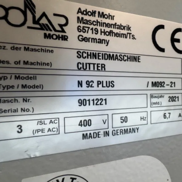 تنتمي ماكينة Polar N 92 Plus إلى أحدث أجيال أنظمة القص من شركة Adolf Mohr الألمانية. تم تصميمها لتلبية متطلبات بيئات التشطيب الحديثة، حيث تجمع بين الهندسة الدقيقة وأنظمة التحكم الرقمية المتطورة.