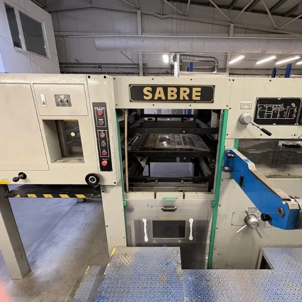 ماكينة SABRE SBL-1050 SE هي ماكينة قص بالقالب أوتوماتيك مصممة لأعمال القص والتكسير بدقة عالية. تتميز بقوة ضغط كبيرة وأداء صناعي ثابت يجعلها مناسبة لمصانع التعبئة والتغليف وأعمال التشطيب المتوسطة والكبيرة.