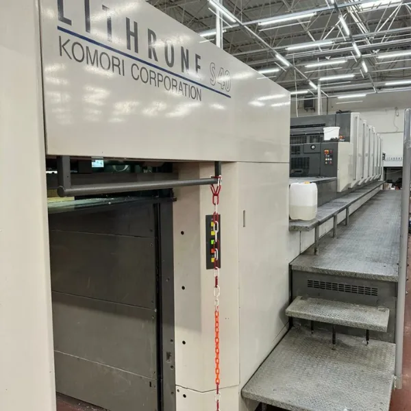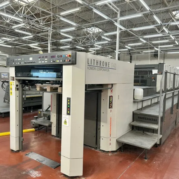 ماكينة كوموري ليثرون LS 640 C (X) للطباعة الأوفست مصممة لتقديم جودة طباعة عالية، سرعة إنتاج مرتفعة، واستقرار تشغيلي ممتاز لأعمال الطباعة متوسطة وكبيرة المقاس. تم تصنيعها بواسطة شركة Komori، وتجمع بين هيكل ميكانيكي قوي وأنظمة أتمتة متقدمة لضمان الدقة والاعتمادية.