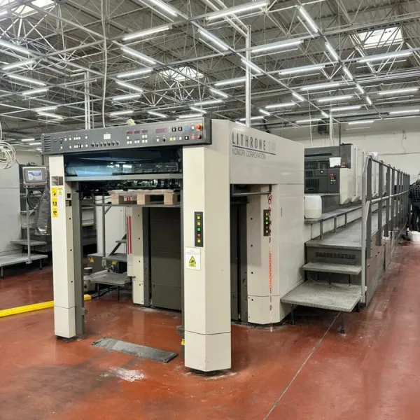 ماكينة كوموري ليثرون LS 640 C (X) هي ماكينة طباعة أوفست 6 ألوان مزودة بوحدة طلاء، مصممة لأعمال الطباعة التجارية وطباعة العبوات التي تتطلب إنتاجية عالية وجودة طباعة مستقرة.
