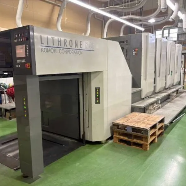 ماكينة Komori GL 440 HUV موديل 2011 هي ماكينة أوفست شيت فيد 4 ألوان بمقاس 102 × 72 سم، مخصصة لطباعة الباكجنج والطباعة التجارية عالية الجودة.