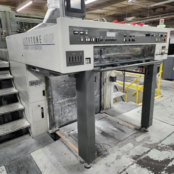ماكينة كوموري L 440 SP موديل 2004 هي ماكينة أوفست شيت فيد 4 لون مزودة بخاصية الطباعة على الوجهين، وتُستخدم في الإنتاج التجاري بكفاءة عالية.