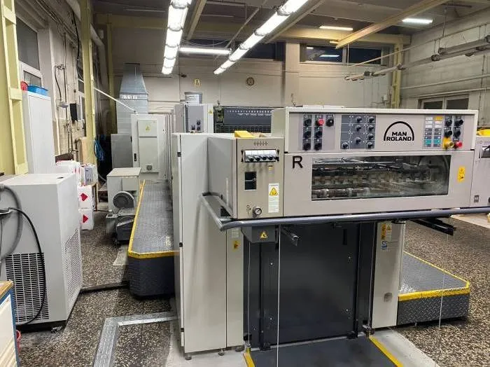 ماكينة مان رولاند 305 HOB موديل 1999 هي ماكينة أوفست شيت فيد 5 ألوان عالية الأداء ومخصصة للطباعة التجارية متوسطة المقاس. مزودة بنظام تحكم Graphometric للكثافة الضوئية، ونظام ترطيب Rolandmatic بالكحول، ونظام تبريد Technotrans، وأنظمة غسيل أوتوماتيكية كاملة، بالإضافة إلى نظام تقليب 2/3 – 5/0. توفر الماكينة ثبات ألوان ممتاز وسرعة إنتاج تصل إلى 15,000 ورقة في الساعة، بعداد تشغيل حوالي 137 مليون.