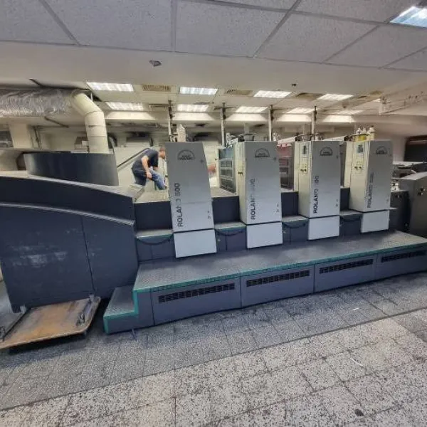 ماكينة مان رولاند 504 موديل 2002 هي ماكينة أوفست شيت فيد 4 ألوان بمقاس 74 × 53 سم، مزودة بوحدة RCI، ونظام APL لتغيير الألواح أوتوماتيكياً بالكامل، ونظام Preset، وأنظمة غسيل أوتوماتيكية كاملة. تحتوي على Rolandmatic Dampening، ووحدة تبريد Technotrans Alpha-D، ومجفف IR، ونظام AirGlide للتسليم العالي. الماكينة تحت عقد صيانة رسمي من Man Roland منذ الجديدة. خيار قوي لمطابع الطباعة التجارية .