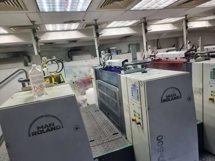 ماكينة مان رولاند 504 موديل 2002 هي ماكينة أوفست شيت فيد 4 ألوان مجهزة بالكامل بمقاس 74 × 53 سم، مخصصة للطباعة التجارية والباكجنج متوسط المقاس.