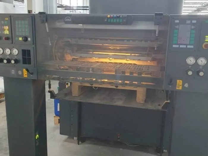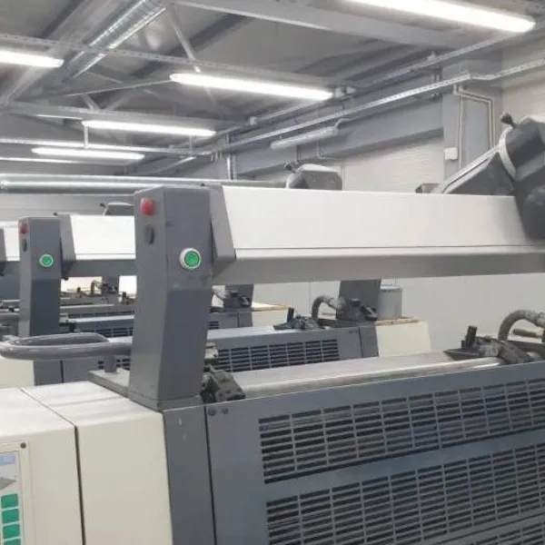 ماكينة مان رولاند R505 LV موديل 2005 هي ماكينة أوفست شيت فيد 5 ألوان بمقاس 74 × 53 سم، مزودة بوحدة طلاء Tower Coater ومجفف IR/TL ونظام تحكم RCI متطور. بسرعة إنتاج تصل إلى 15,000 ورقة/ساعة، ولوحة تحكم Premium، وجهاز قياس كثافة Graphometronic، وأنظمة غسيل أوتوماتيكية، توفر دقة ألوان وثبات إنتاجي عالي. خيار قوي في الطباعة التجارية والباكجنج