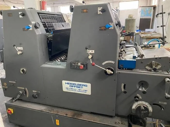 ماكينة هايدلبرج جي تي او ZP 46 موديل 1979 هي ماكينة أوفست 2 لون مزودة بنظام بيرفكتور للطباعة على الوجهين، ومناسبة للأعمال التجارية الصغيرة والمتوسطة. تتميز بنظام ترطيب مائي (Water Dampening) ونظام مانع للكهرباء الساكنة (Antistatic)، ما يجعلها مناسبة لطباعة الكروت، والمطبوعات التجارية، والأظرف، وأعمال التغليف الخفيفة. ماكينة ألمانية قوية وموثوقة للمطابع التي تبحث عن حل اقتصادي وفعال.
