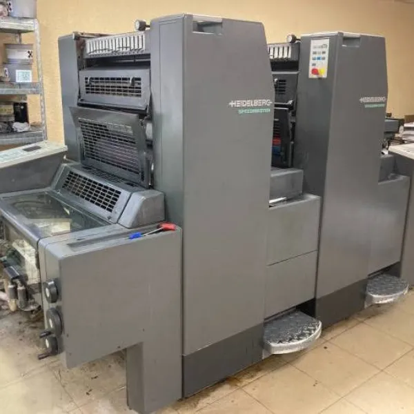 ماكينة هايدلبرج سبيدماستر 52-2 P موديل 2000 هي ماكينة أوفست شيت فيد 2 لون مقاس 52 × 37 سم (B3)، مخصصة للطباعة التجارية عالية الجودة بالمقاسات الصغيرة والمتوسطة.