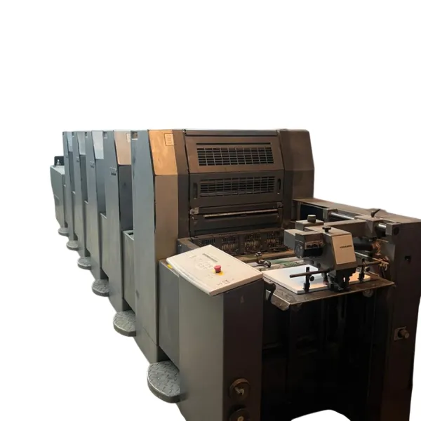 ماكينة هايدلبرج سبيدماستر SM 52-5 H للطباعة الأوفست مصممة لتوفير دقة عالية وجودة طباعة ممتازة مع استقرار في الأداء. تم تصنيعها بواسطة شركة هايدلبرج الألمانية، وتعمل بتكوين مستقيم بخمس وحدات طباعة، مما يجعلها مناسبة لمجموعة واسعة من تطبيقات الطباعة التجارية.