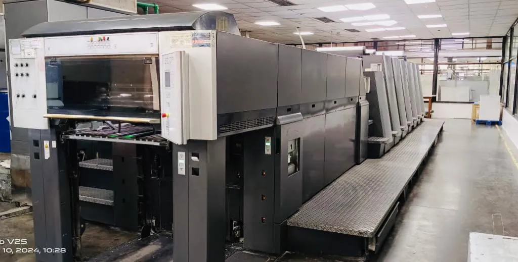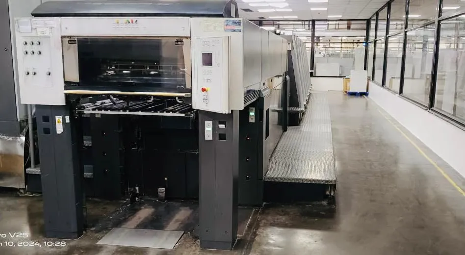 ماكينة هايدلبرج CD 74-6LX Hybrid موديل 2005 هي ماكينة أوفست شيت فيد 6 لون احترافية من فئة F Size، مزودة بوحدة طلاء Inline ونظام UV Hybrid.