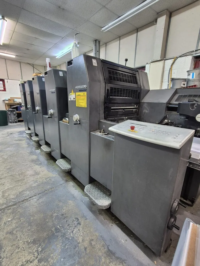 ماكينة هايدلبرج PM 52-5P3 موديل 2004 هي ماكينة أوفست شيت فيد 5 لون مزودة بخاصية الطباعة على الوجهين، ومصممة لتوفير مرونة عالية في الإنتاج.