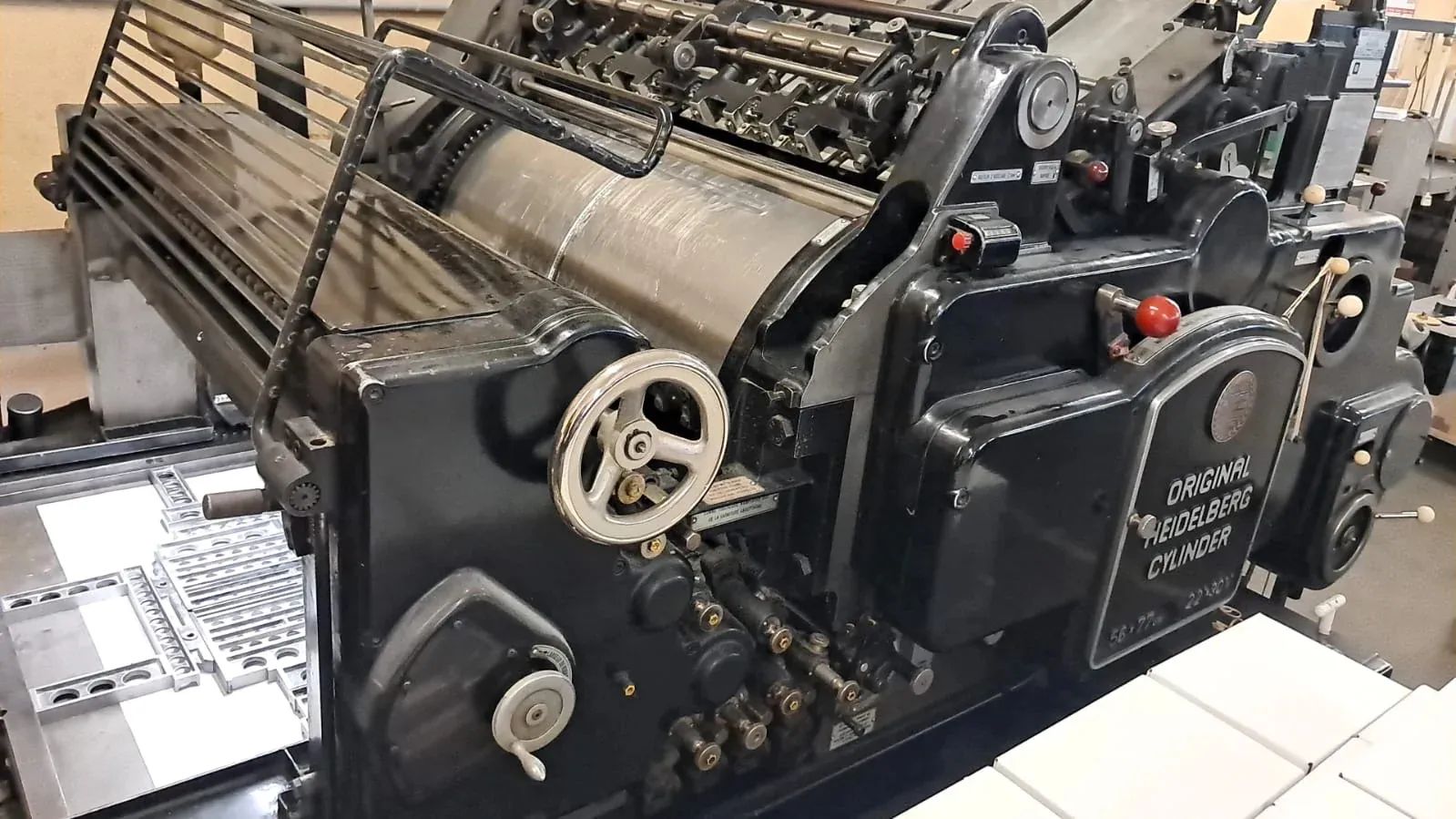 ماكينة هايدلبرج SBG مقاس 56 × 77 سم هي ماكينة قص وتكسير صناعية بنظام بلاتن، مصممة لتنفيذ أعمال القص والتكسير الثقيلة بدقة واعتمادية عالية. يعتمد تصميمها على هيكل ميكانيكي قوي من الحديد المصبوب، يضمن توزيع ضغط متساوٍ على كامل مساحة الورقة، ما ينتج عنه قص نظيف وتكسير دقيق حتى مع الخامات السميكة.