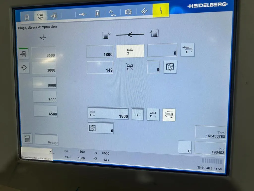 ماكينة هايدلبرج SM 74-8P موديل 2005 هي ماكينة أوفست شيت فيد 8 لون احترافية من سلسلة Speedmaster، ومصممة للإنتاج التجاري والتغليف بكفاءة عالية.