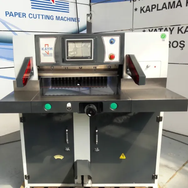 ماكينة KAYM 60 PL هي ماكينة قص ورق صناعية حديثة، مصممة لقص الورق بدقة عالية باستخدام نظام جيلوتين أحادي السكينة. تتميز بشاشة تحكم تعمل باللمس، نظام قص هيدروليكي، وأنظمة أمان متقدمة، مما يجعلها مناسبة للمطابع التجارية وأقسام التشطيب بعد الطباعة.
