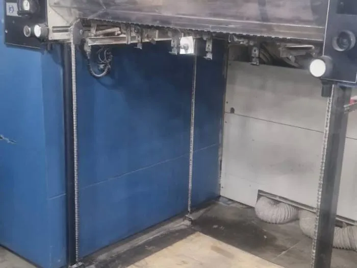 ماكينة KBA Rapida 104-5P موديل 1996 هي ماكينة أوفست شيت فيد صناعية كبيرة المقاس، مصممة لتلبية احتياجات المطابع التجارية ومطابع العبوات ذات الإنتاج العالي. تتميز ببنية قوية للغاية بوزن تقريبي 49 طن، ما يضمن ثبات التشغيل وجودة طباعة مستقرة.