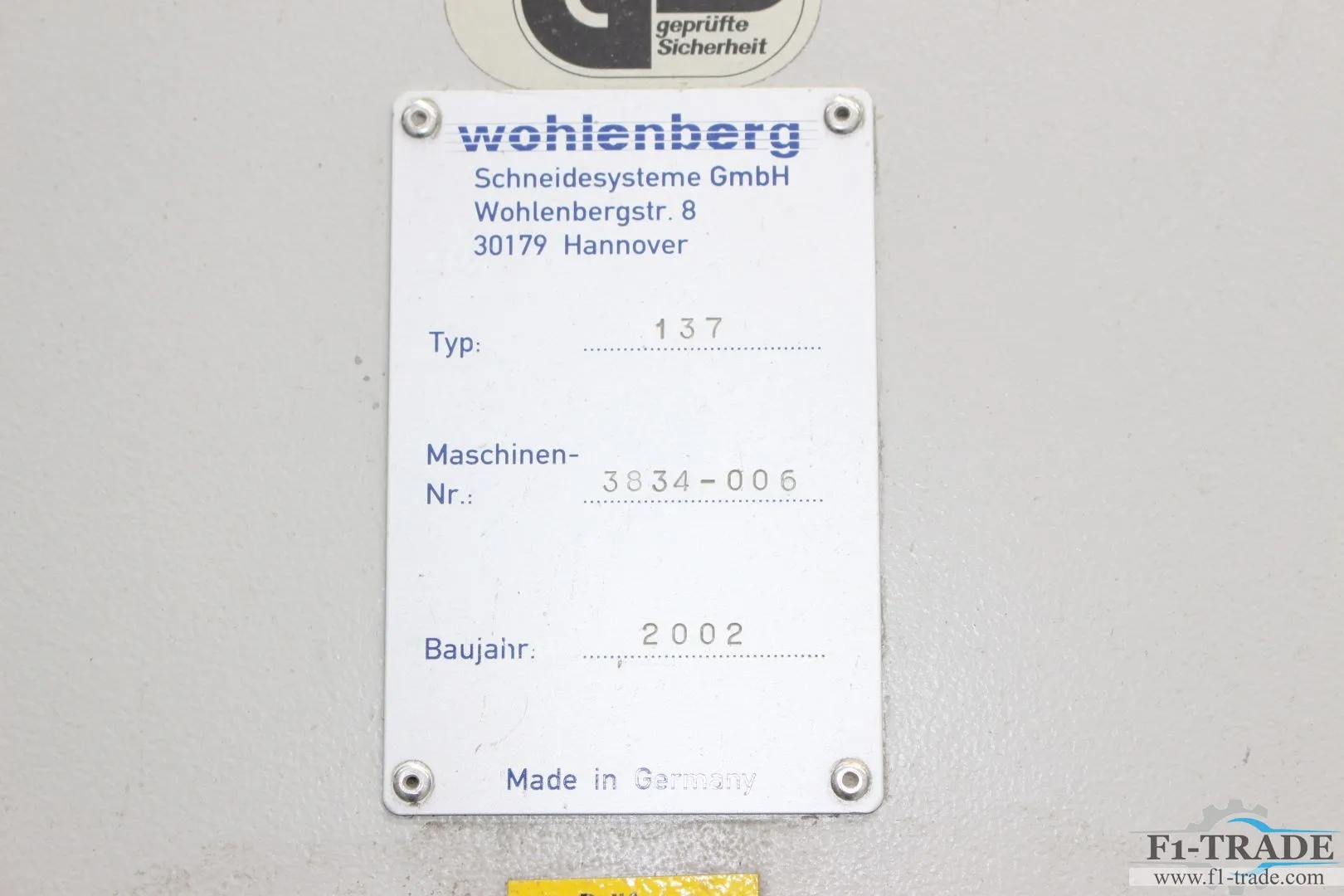 ماكينة Wohlenberg 137 CUT-Tec موديل 2002 هي مقص ورق صناعي مزود برجاج (Jogger)، مصممة لتوفير دقة عالية في القص وسرعة في التشغيل، ومناسبة لعمليات التشطيب في المطابع الاحترافية.