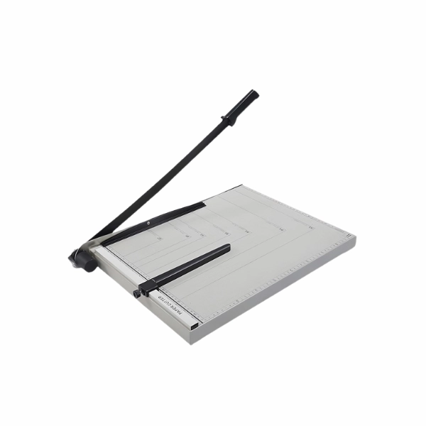 يأتي مقص الورق A4 بذراع يدوي للقص وقاعدة معدنية متينة تحتوي على شبكة قياسات مسبقة لتثبيت الورق بدقة.