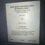 ماكينة طباعة أوفست هايدلبرغ SORMZ 2 لون 50×70 – موديل 1996، بنظام ترطيب كحولي مزوّد بثلاجة تبريد لتحقيق ثبات الحبر والماء. عداد 85 مليون طبعة فقط وحالة ممتازة، صناعة ألمانية موثوقة ومثالية للأعمال التجارية المتوسطة والعالية.