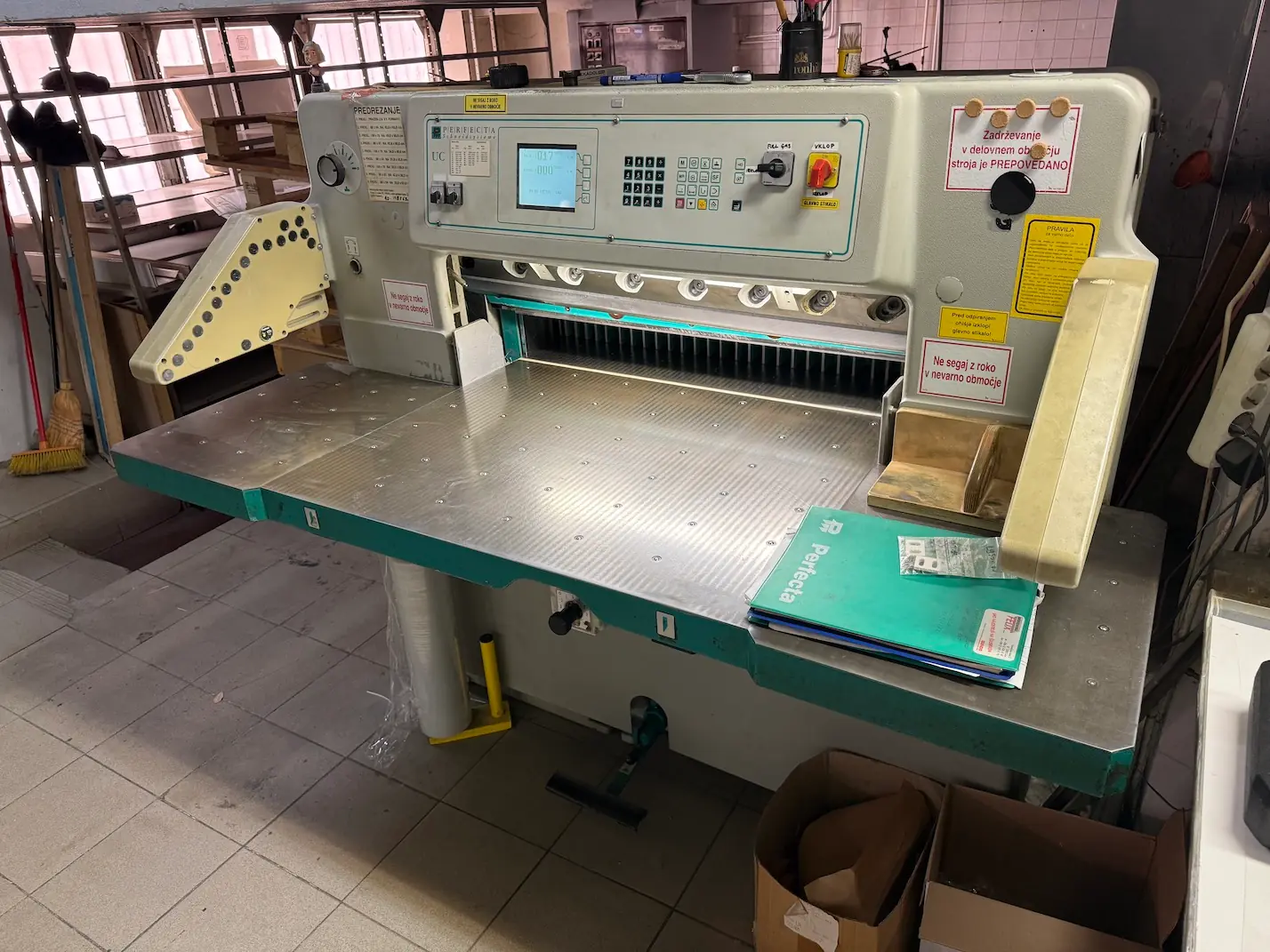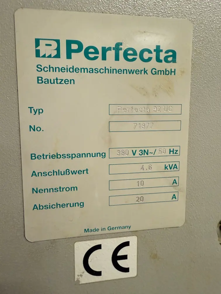 تُعد ماكينة Perfecta 92 UC من أفضل ماكينات القص الألمانية عالية السرعة، تم تصنيعها عام 2001 لتوفر أداءً احترافيًا ودقة في عمليات القص للطباعة التجارية والتغليف.