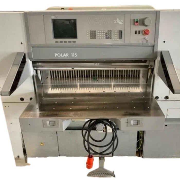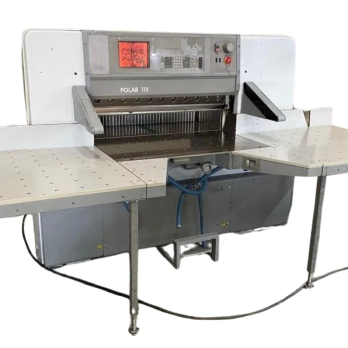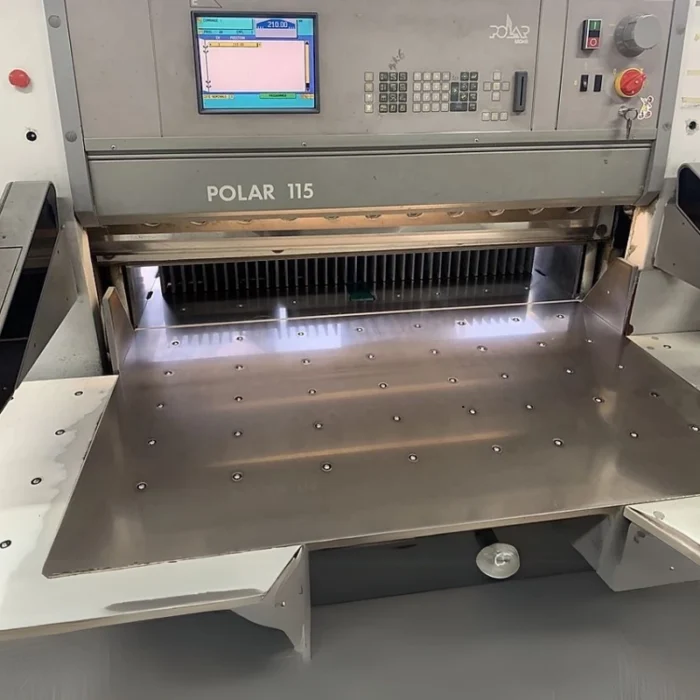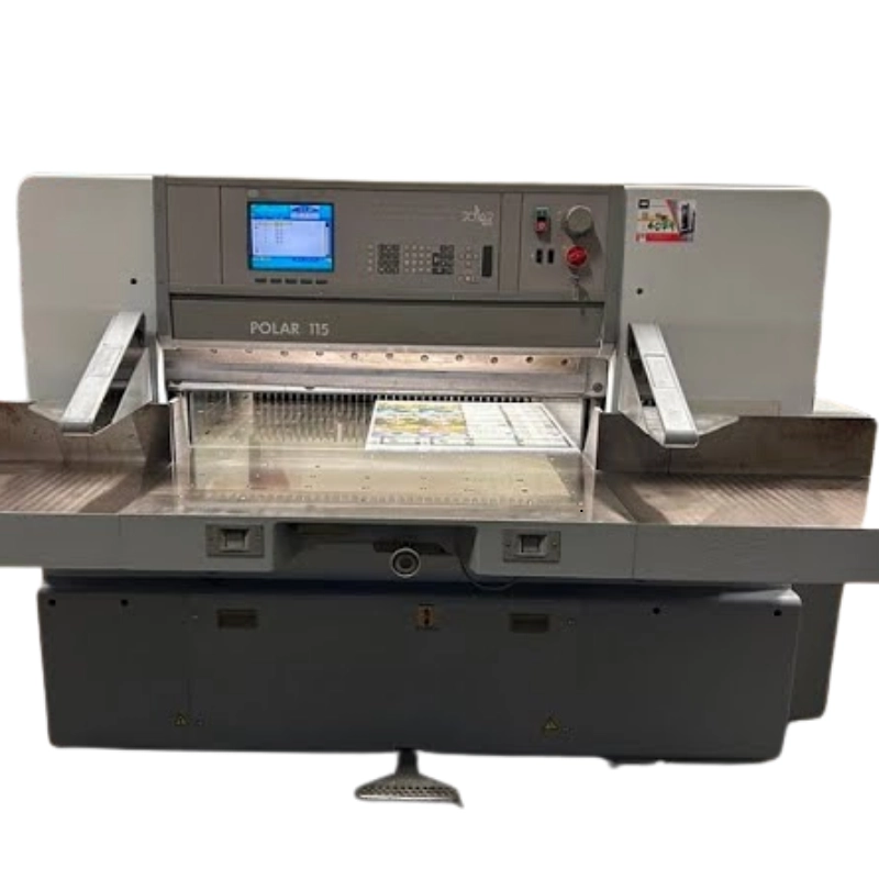 ارتقِ بعملية القطع الورقي مع قطاعة Polar 115 E — ماكينة قوية وموثوقة بمساحة قطع 115 سم، ومزودة بطاولات هوائية وحساسات أمان، صممت للمطابع اللي تطلب الدقة والسرعة والمتانة.