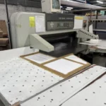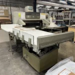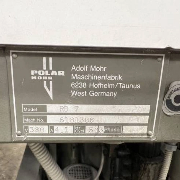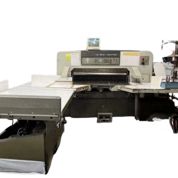 مقص Polar 137 EMC Monitor (موديل 1986) — ماكينة قص دقيقة بعرض 137 سم، مزودة ببرمجة رقمية، حساسات فوتو-سيل، طاولة هوائية، وطاولات جانبية هوائية. تشمل آلة Jogger RB-7 (1991). بحالة تشغيل ممتازة وجاهزة للخدمة.