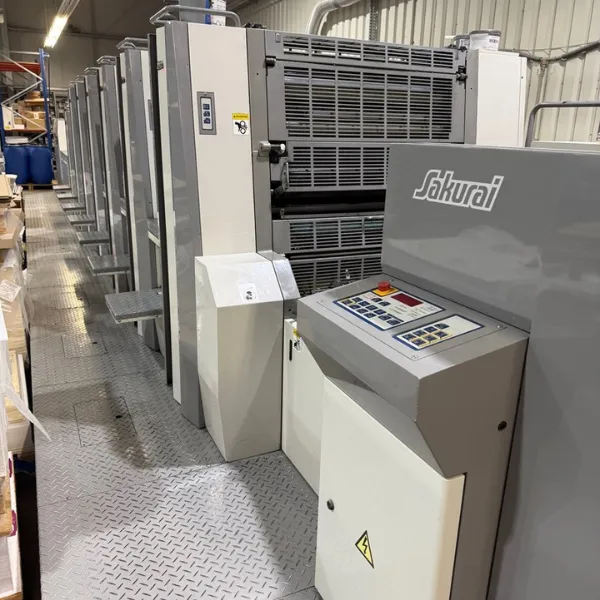 The Sakurai Oliver 675SD (2011) is a high-quality 6-color sheetfed offset printing press in a larger 600 × 800 mm format, designed for demanding commercial production. Equipped with SAPC, advanced Baldwin ink and roller temperature control, IR drying, and water-cooled systems, this machine delivers stable color performance, reliable production, and consistent output. A professional solution for print houses requiring larger format capability.
