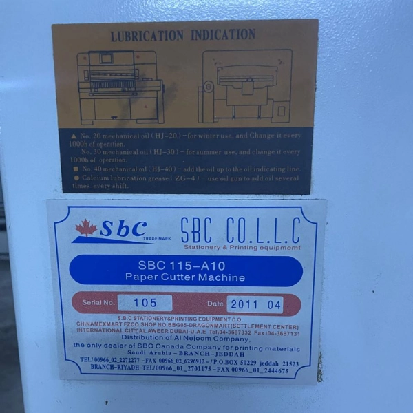 تعتبر SBC 115-A10 ماكينة قص ورقية صناعية، مصممة خصيصًا لقص دقيق في بيئات الطباعة والتشطيب ذات المتطلبات العالية. هذه الوحدة المستعملة موديل 2011 تم صيانتها جيدة وهي بحالة ممتازة، ما يضمن الاعتماد عليها وإذا ربحت.